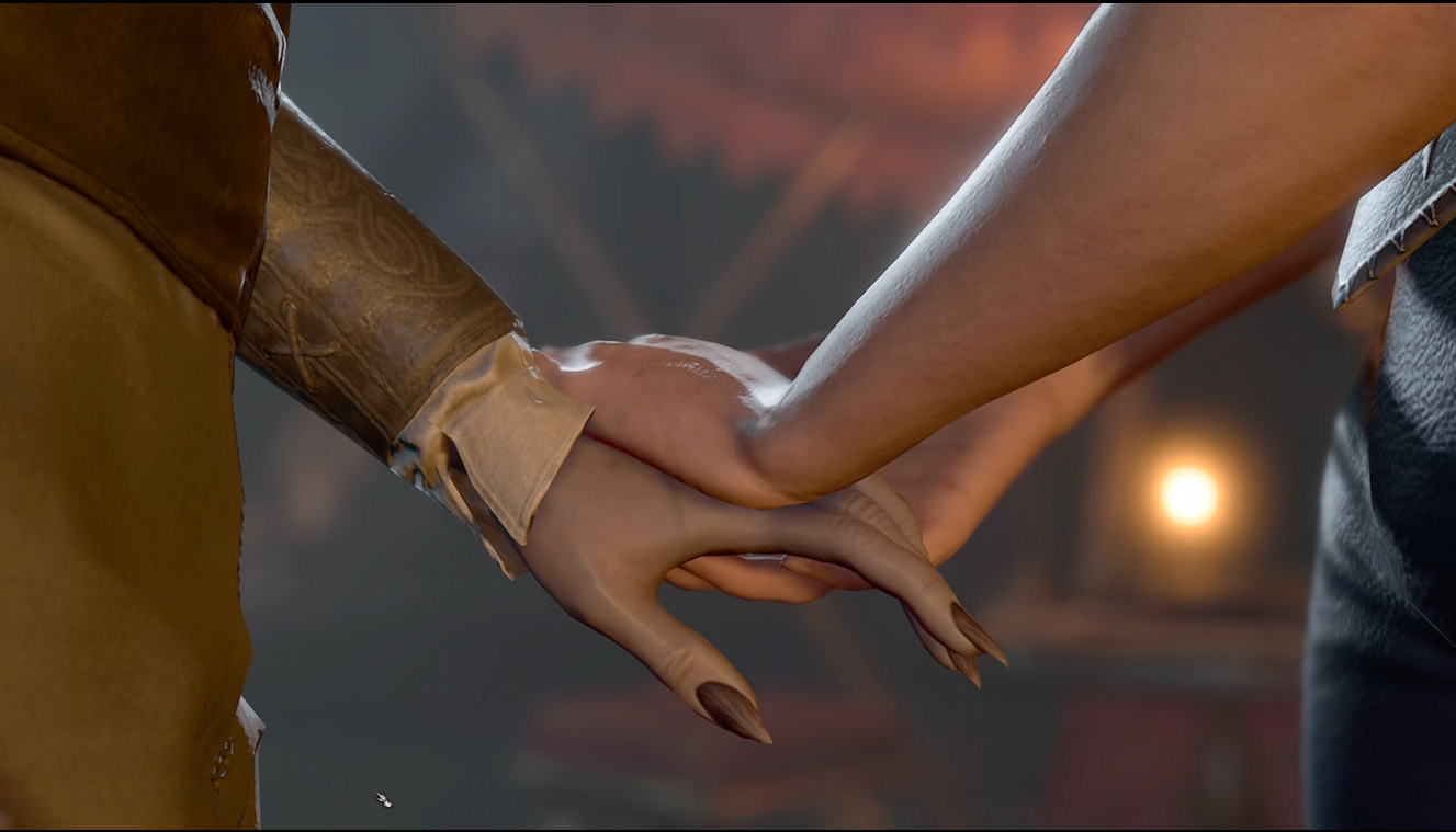 When I played my second run, I ended up dating Astarion through the potion merchant route. In the Yurgir route, Astarion explicitly says something like, “You deserve real love,” and openly acknowledges that he’s drawn to the player. But in the potion merchant route, that line never comes up. So for me, all that happened was that we held hands, exchanged glances, and I felt proud of him for growing as a person.